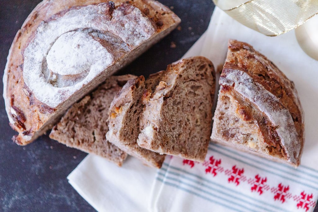 A holiday masterpiece. White chocolate chips, pecans, orange zest, and warm spices nestled in a sweet dough. The perfect festive gift or centerpiece for your family table.